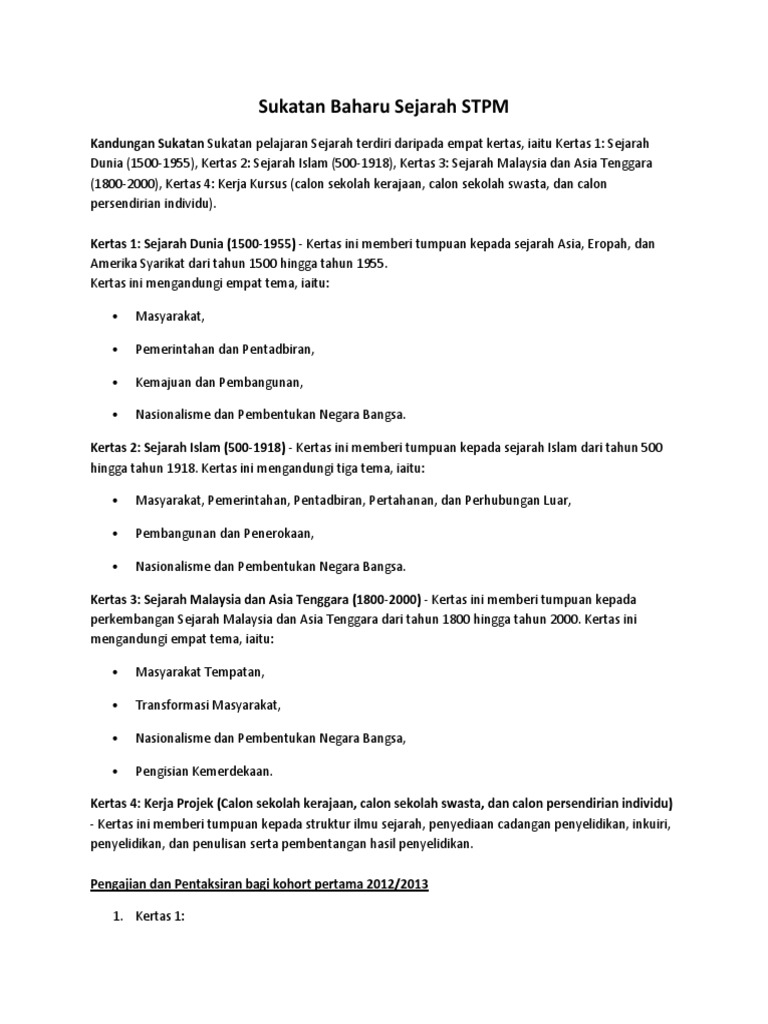 940 Sukatan Pelajaran Sejarah Stpm Baharu Pdf Document