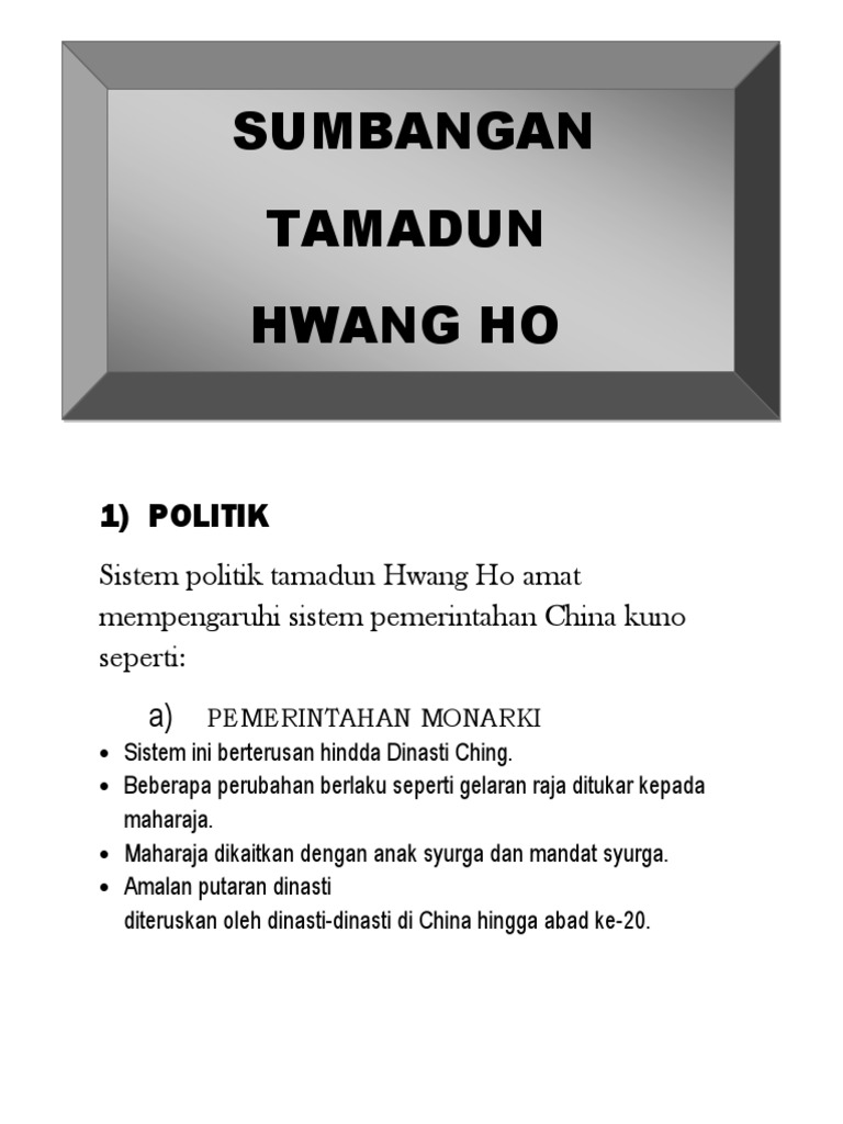 Sumbangan Tamadun Sumbangan Tamadun Hwang Ho China