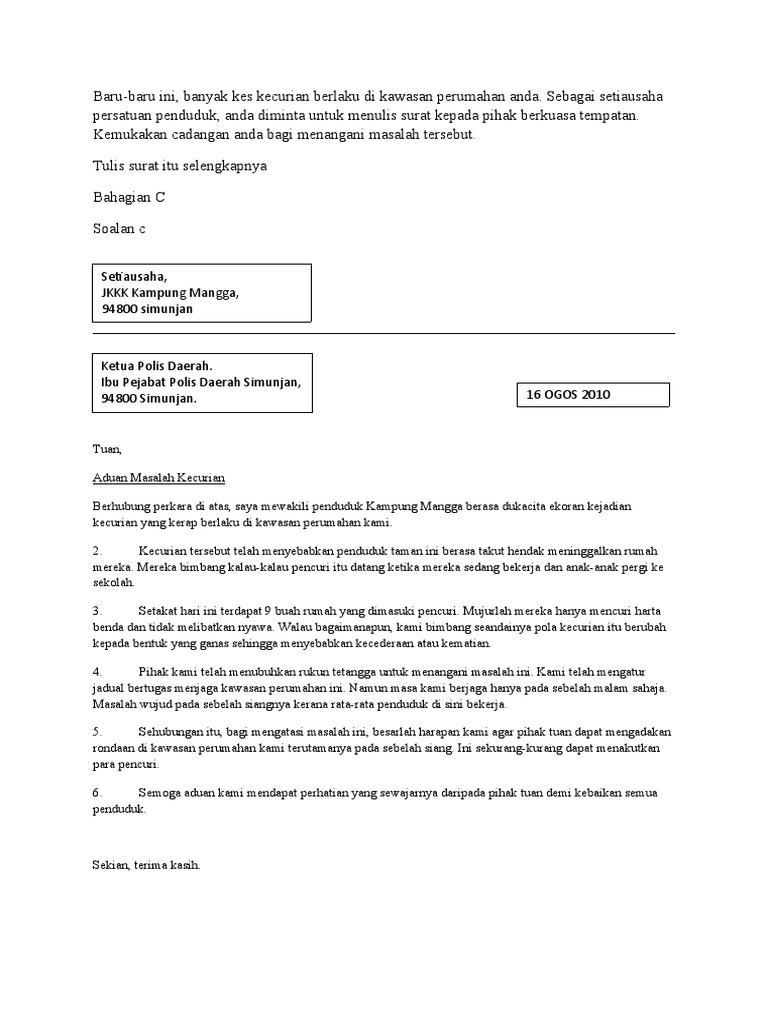 Contoh Karangan Surat Aduan