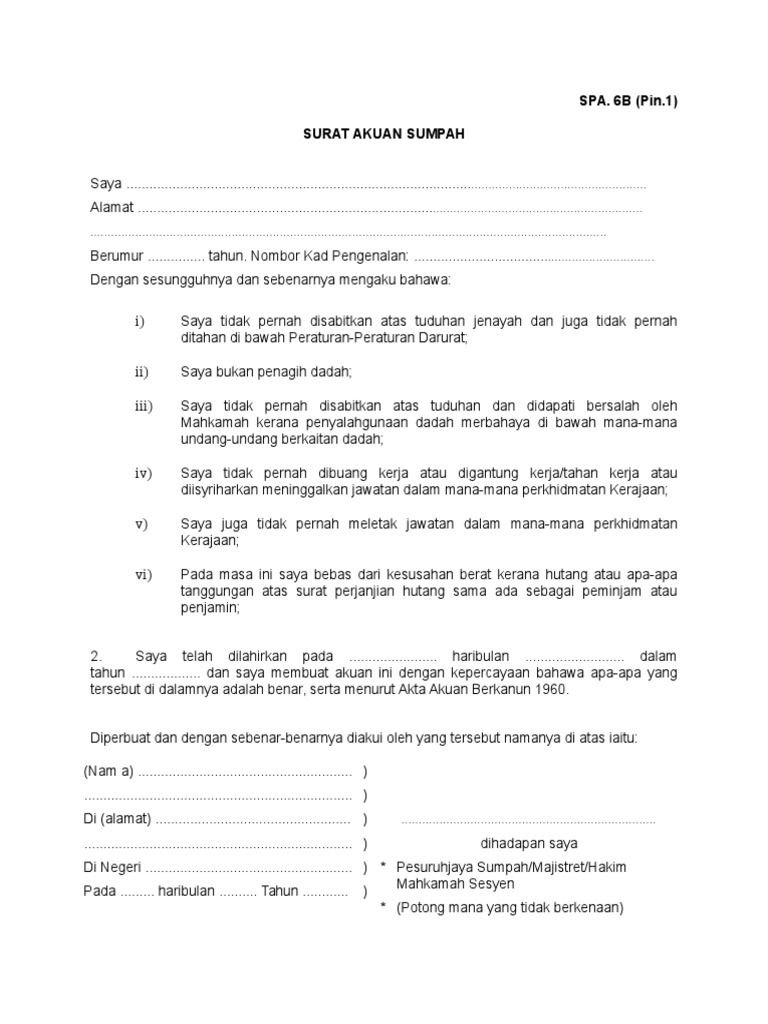 I Ii Iii Spa 6b Pin 1 Surat Akuan Sumpah