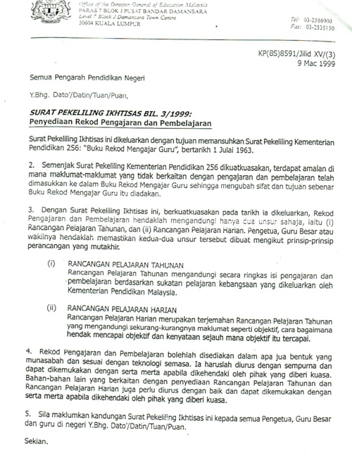 Dunia Sekolah Surat Ikhtisas Bil 3 1999 Penyediaan Rekod Pengajaran Pembelajaran