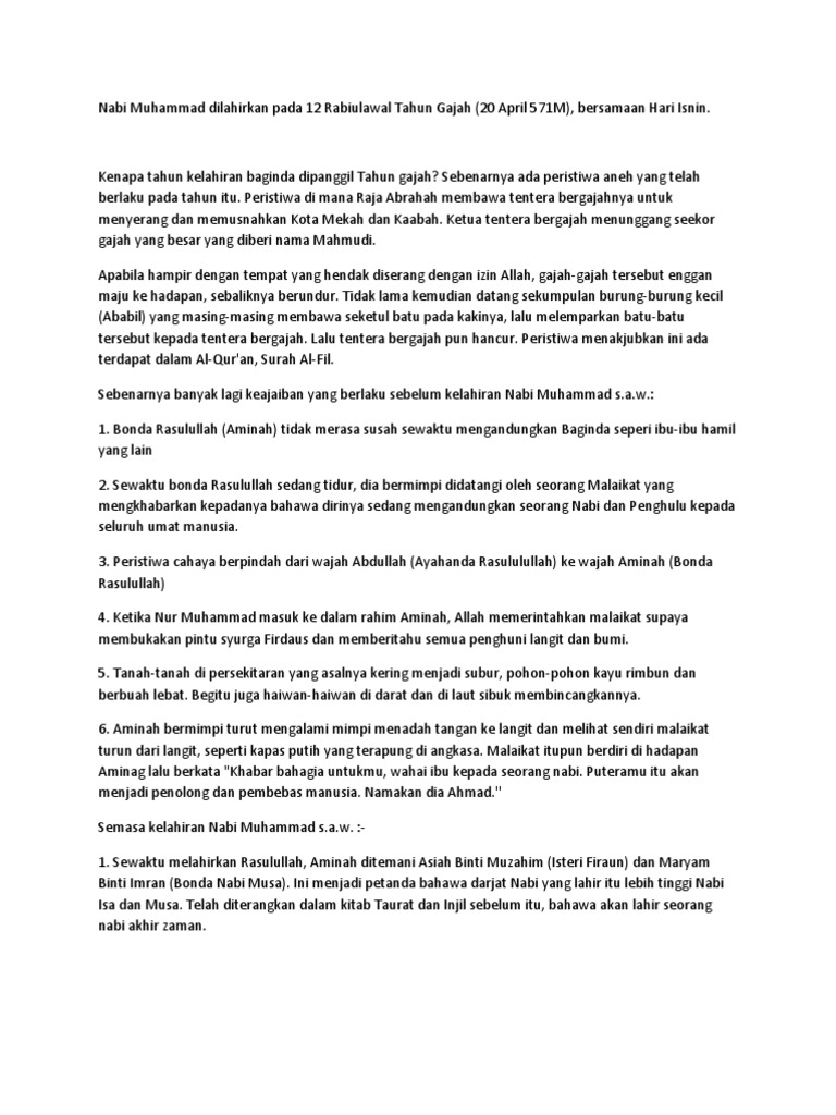 Tanggal 12 Rabi Ul Awal Tahun Gajah Kelahiran Nabi Muhammad S A W