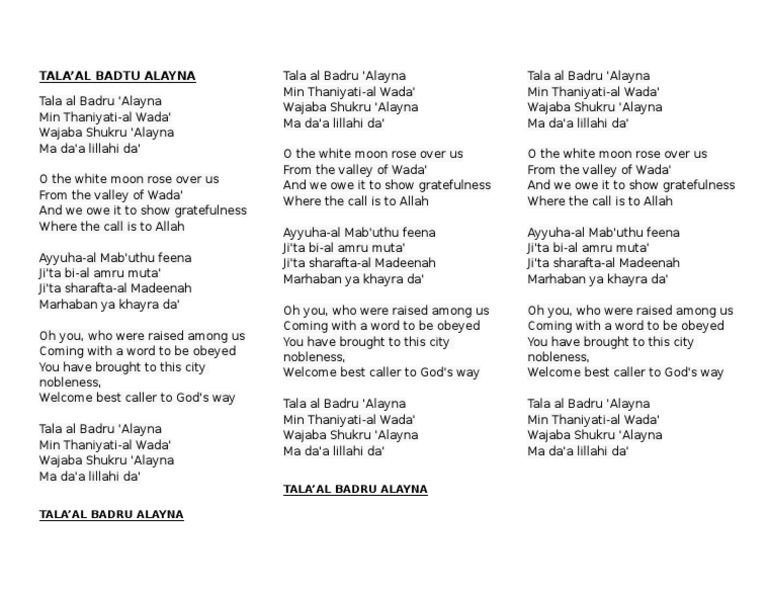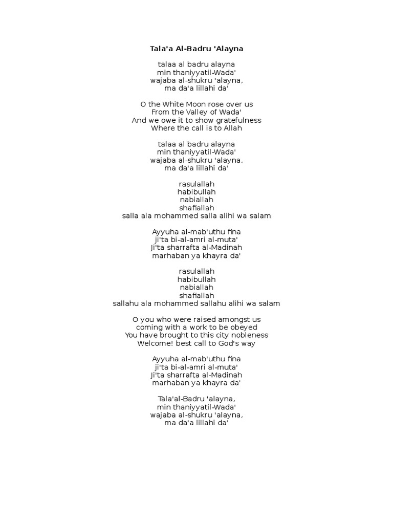 Lyrics Talaalbadrualayna Theology Names Of God