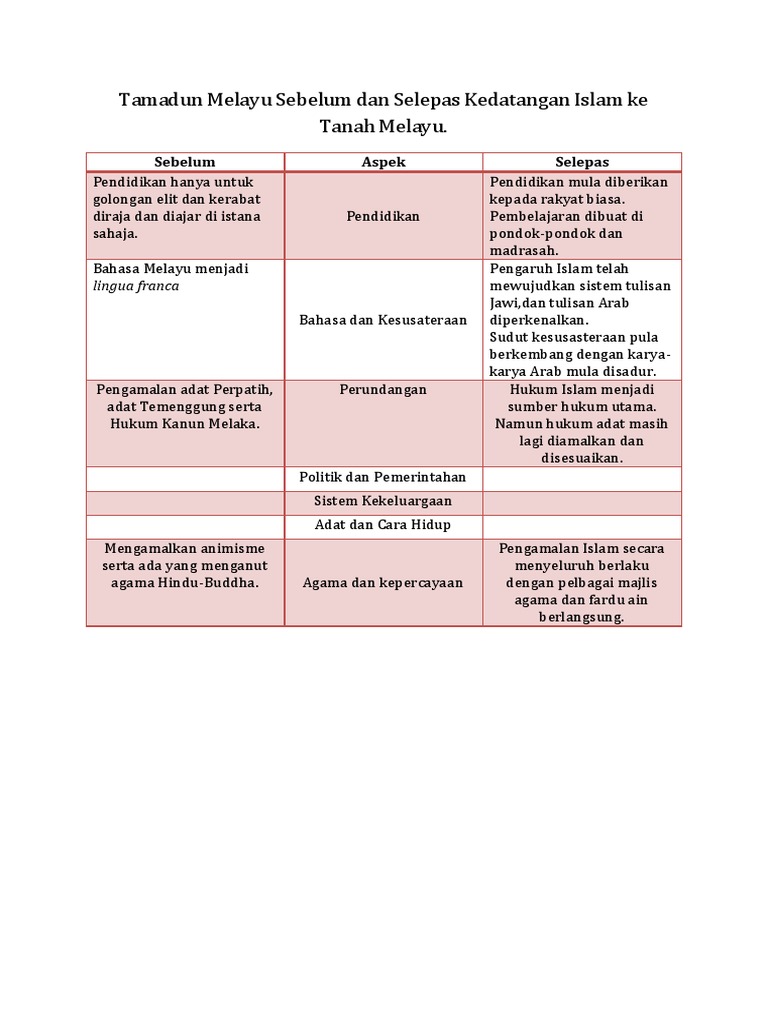 Tamadun Melayu Sebelum Dan Selepas Kedatangan Islam Ke Tanah Melayu