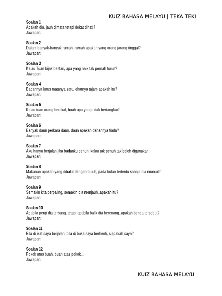 Pelbagai Contoh Teka Teki Bahasa Melayu Dengan Jawapan Yang Menarik Untuk Para Ibubapa Pekeliling Terbaru Kerajaan
