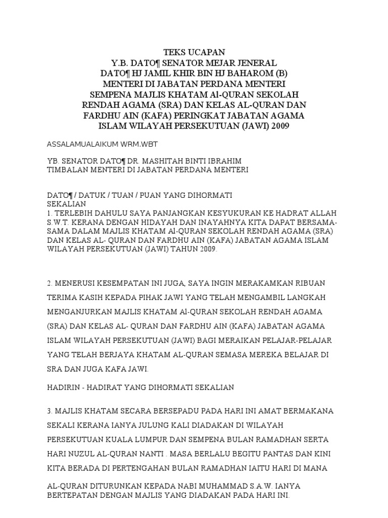 Teks Ucapan Majlis Khatam Al Quran Doc