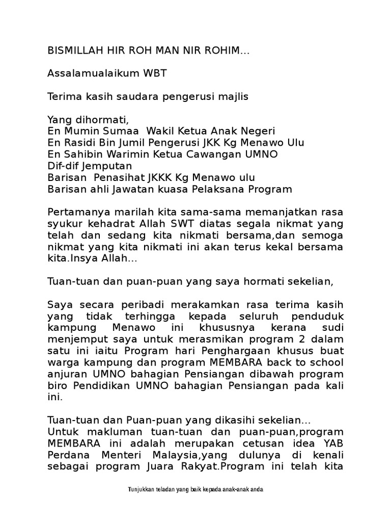 Sampel Teks Mempengerusikan Mesyuarat Perwakilan Seorang Musafir Di Angin Lalu