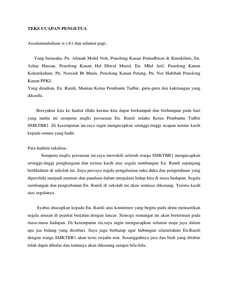 Doc Contoh Ucapan Wakil Murid Untuk Majlis Persaraan Sharina Sharina Academia Edu
