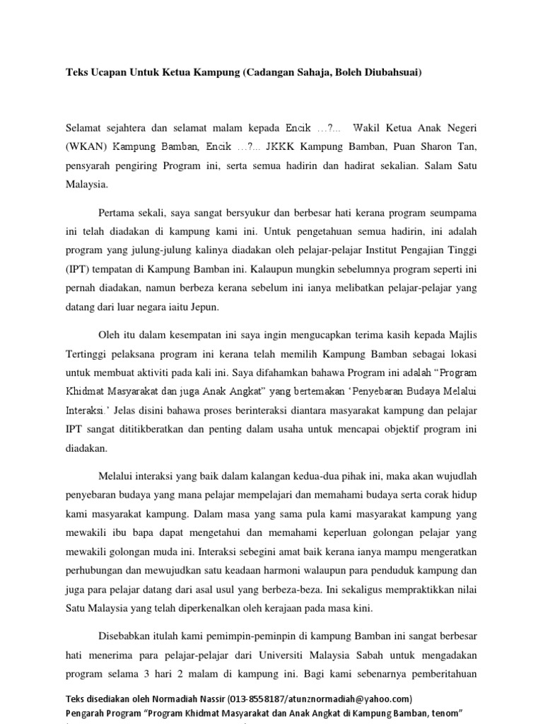 Ucapan Ketua Kampung