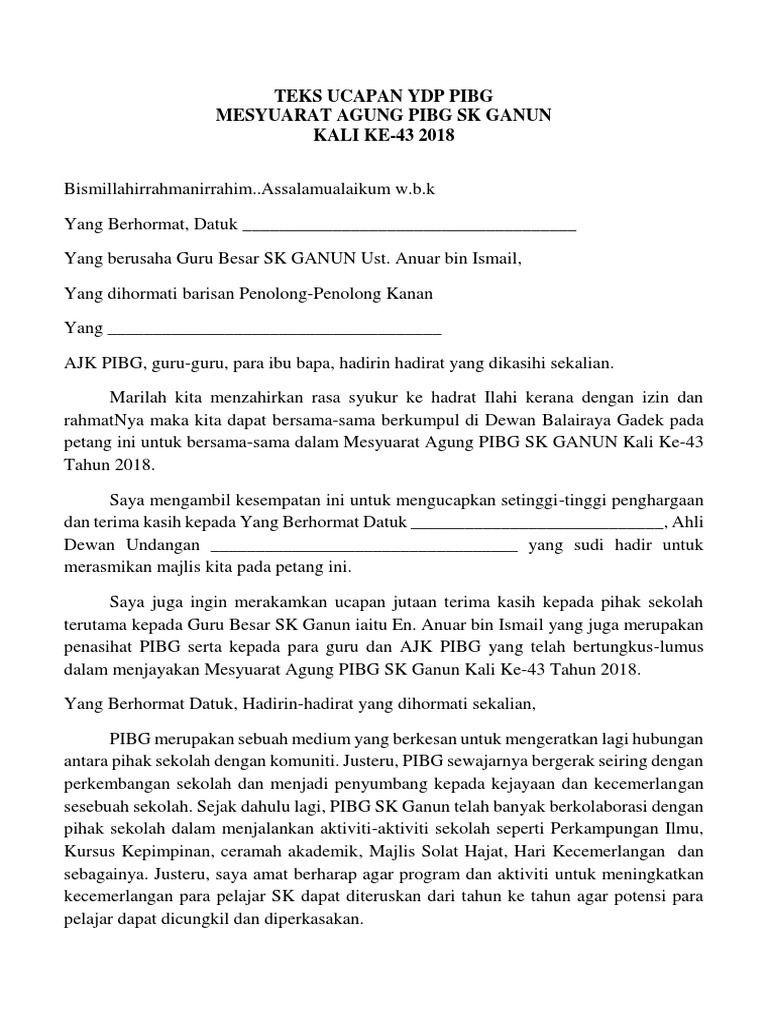 Teks Ucapan Yang Ydp Pibg Ok