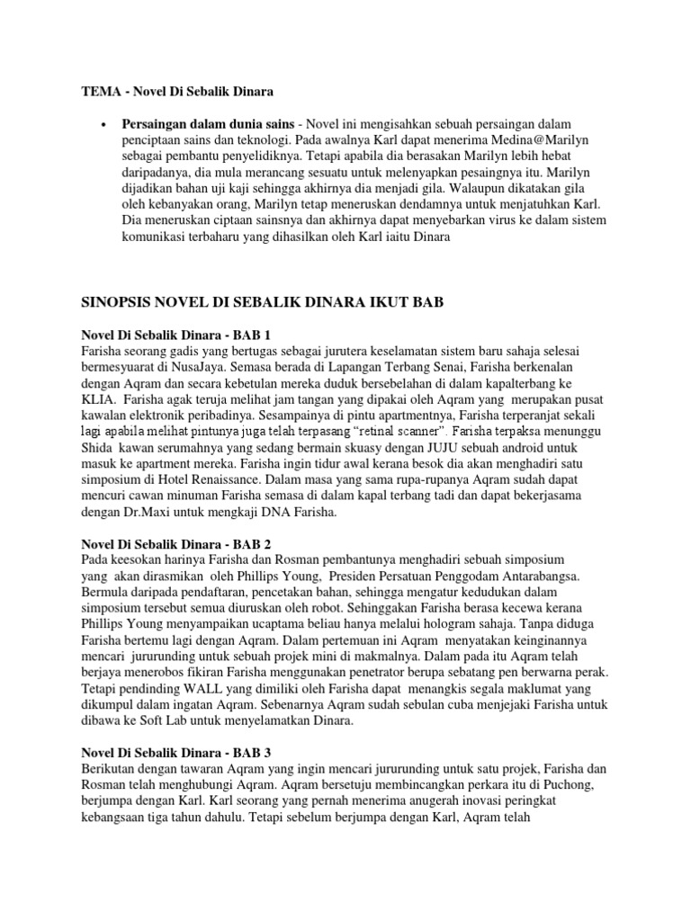 Ulasan Novel Di Sebalik Dinara Docx Ulasan Novel Di Sebalik Dinara Tema Persaingan Dalam Dunia Sains Novel Ini Mengisahkan Sebuah Persaingan Dalam Course Hero