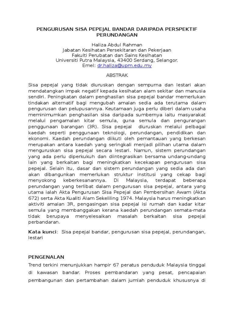 Pengurusan Sisa Pepejal Pdf Document