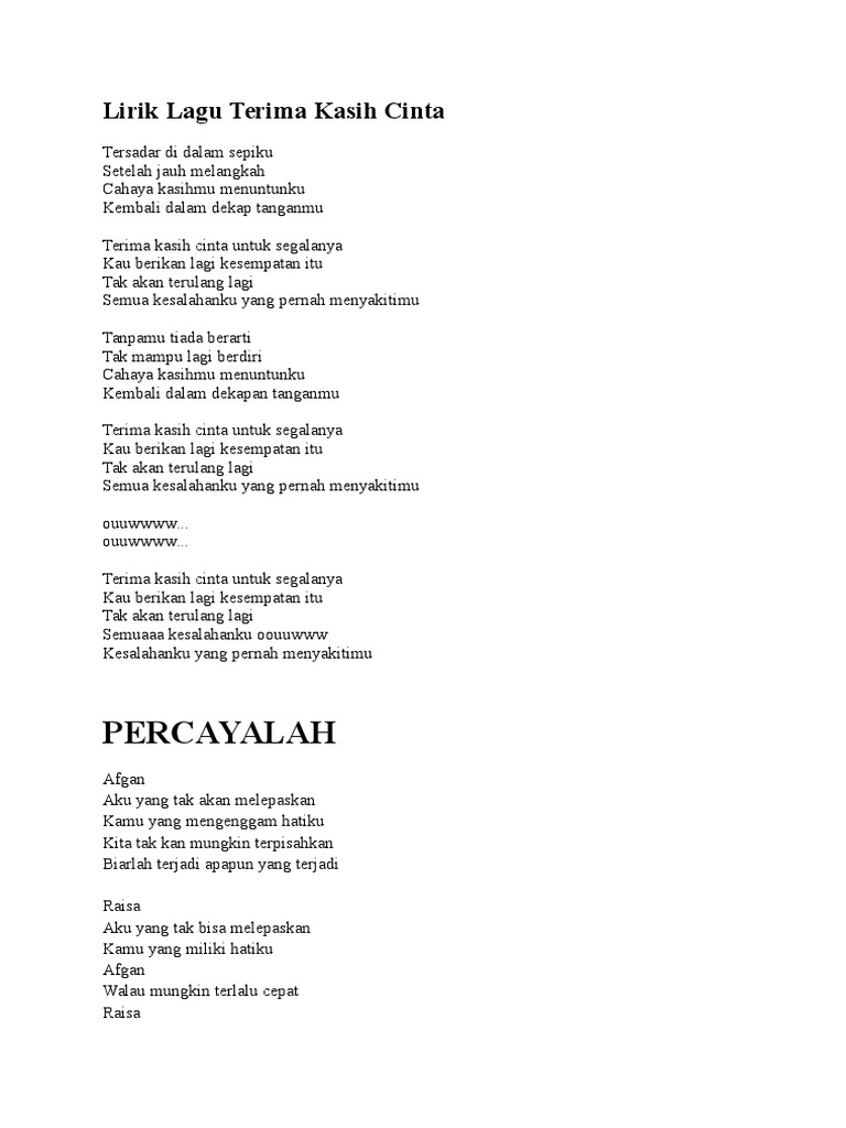 Afgan Terima Kasih Cinta Dengan Lirik Playlist Lirik Kekasihku Cinta