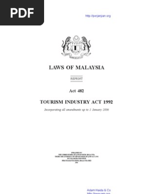 Tourism Industry Act 1992 Act 482 And Regulations Mal Tourism Prom Joshua Legal Art Gallery