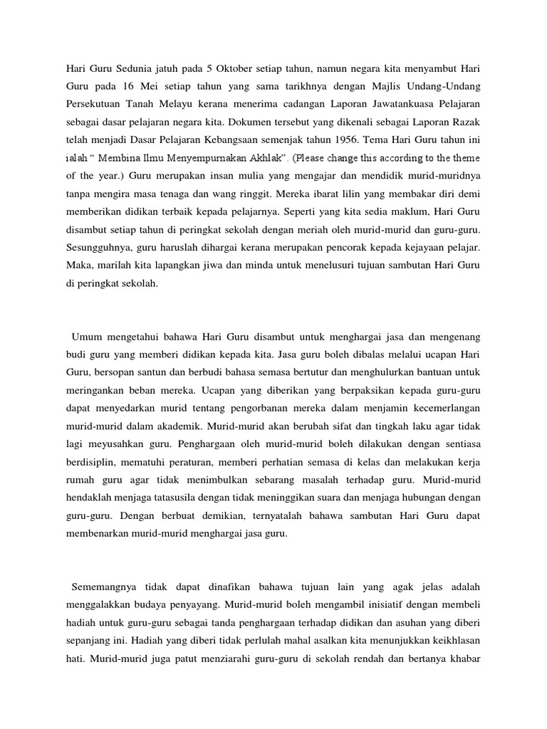 Huraikan Pendapat Anda Tentang Tujuan Mengadakan Sambutan Hari Guru Di Peringkat Sekolah