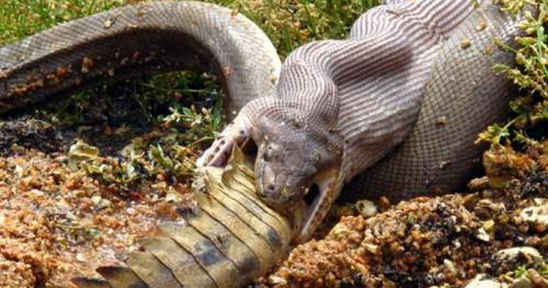 Tertangkap Kamera Inilah Detik Detik Ular Raksasa Telan Buaya