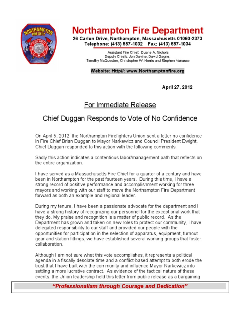 Fire Chief Brian Duggan Responds To Vote Of No Confidence Public Sphere Government