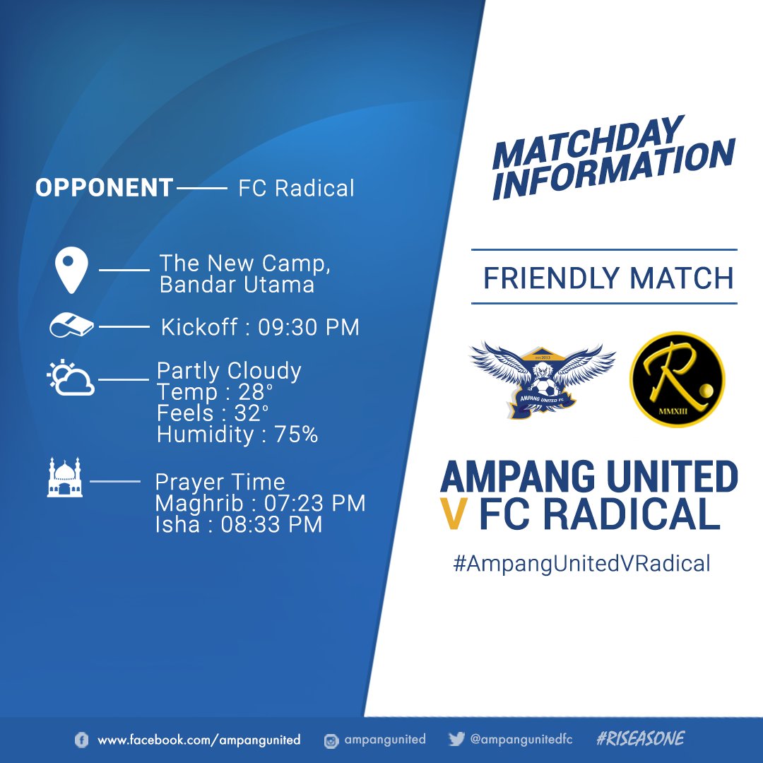 Ampang United Fc On Twitter Matchday Information Informasi Hari Perlawanan Berikut Adalah Informasi Hari Perlawanan Ramalan Cuaca Dan Waktu Solat Dipaparkan Disini Bagi Memudahkan Kesemua Pemain Dan Penyokong Merancang Perjalanan Ke Tempat