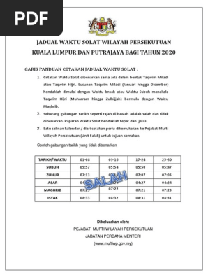 Waktu Solat Wilayah Persekutuan Kuala Lumpur 2014 Pdf Zawx Saizhpanc Site