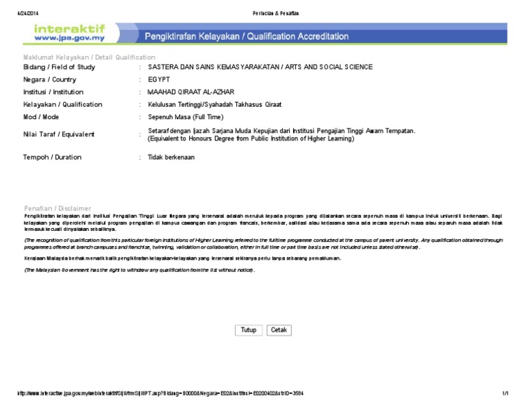 Www Interactive Jpa Gov My Pengiktirafan Kelayakan