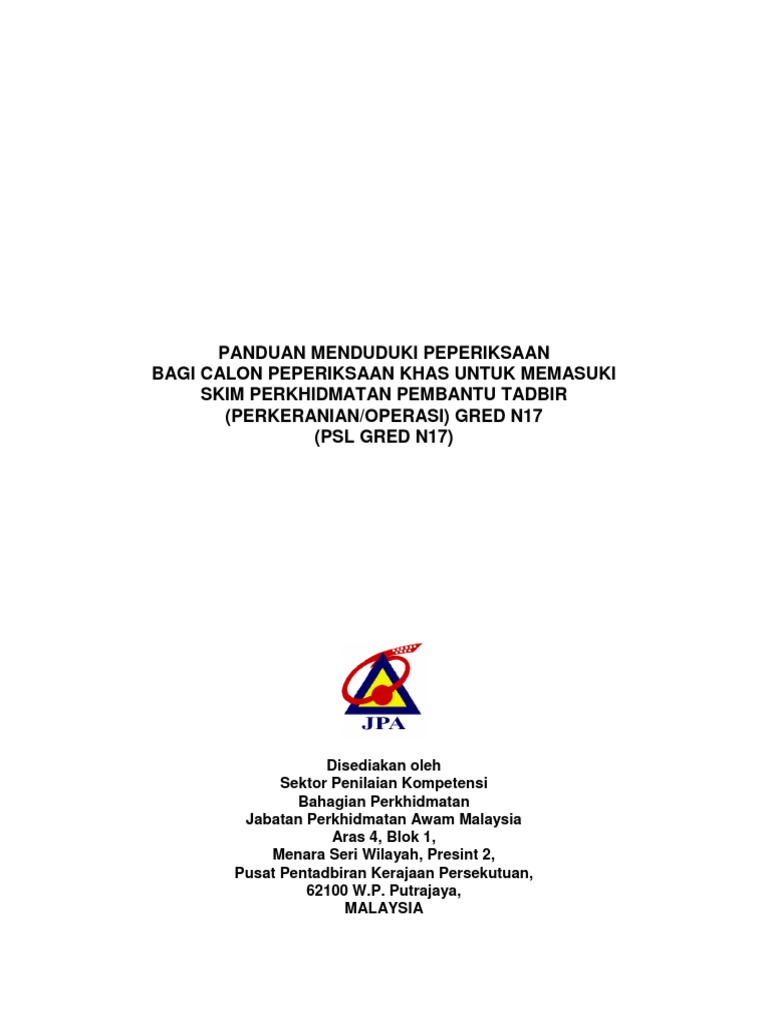 Https Www Kompetensi Jpa Gov My Peperiksaan File Panduan Panduan Peperiksaan Perkhidmatan Psp Gred N17 Pdf