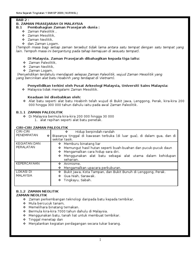 Nota Sejarah Tingkatan 1 Bab 2 Zaman Prasejarah Di Malaysia